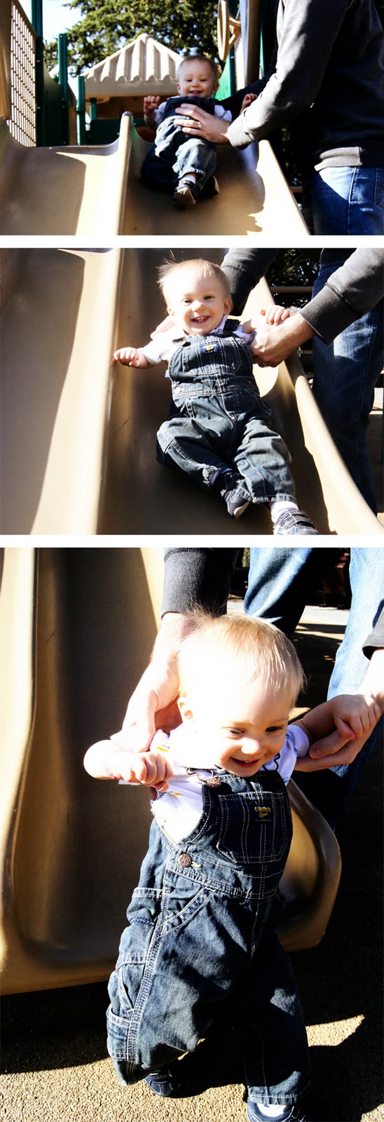 We then headed over to a local Sushi place for lunch where Q let us know loud and clear that he needed to go someplace to get the wiggles out. We found a cute little park not too far away and enjoyed watching our little boy explore and climb on the equipment. He made it all the way up the structure by himself (with some spotting from daddy) and absolutely LOVED the slide!